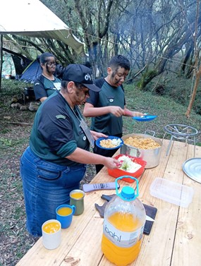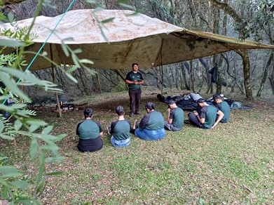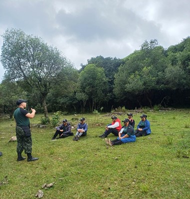 Dando continuidade à programação, o Tenente Coronel Leandro assumiu a palavra para instruir os Guerreiros sobre cuidados na mata, noções de primeiros socorros e o uso correto do rádio. Ao meio-dia, foi servido um delicioso almoço.