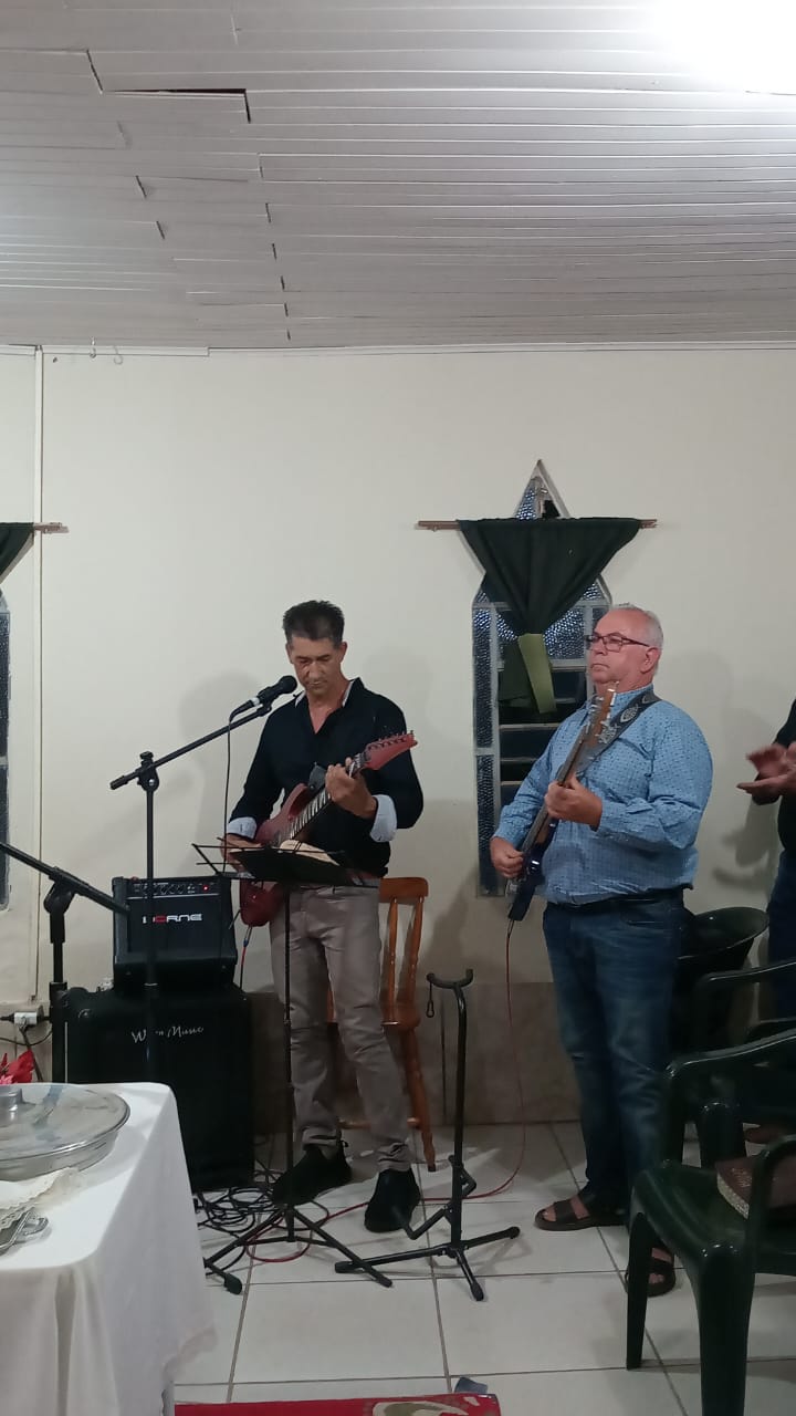 O momento de louvor contou com a participação dos irmãos locais e também dos visitantes, entre eles os irmãos Dorvair e Girlene Vega, que compartilharam hinos de adoração a Deus.