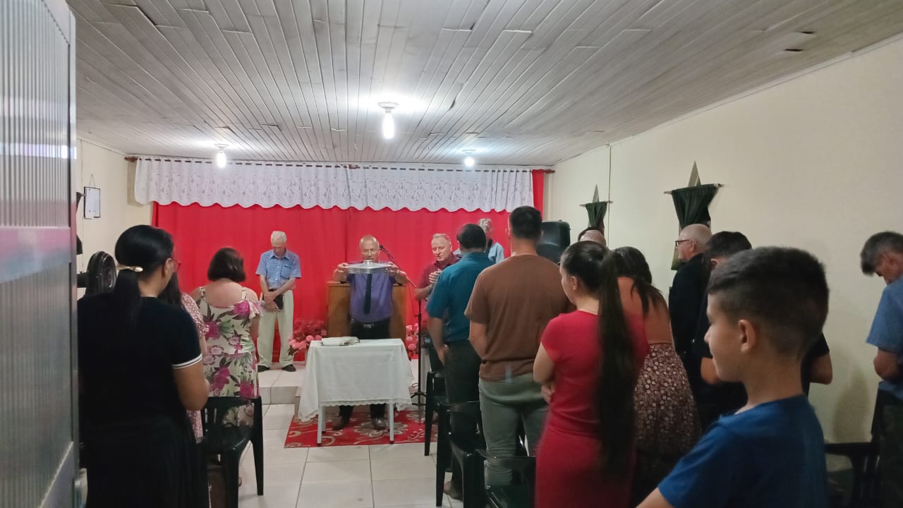 A IBC Congregação Coxilha das Flores realizou, no último domingo, dia 7 de dezembro, o último culto de Santa Ceia de 2025. A celebração foi conduzida pelo pastor presidente Paulo Fraga, que esteve acompanhado de sua família. O culto também contou com a participação de irmãos da Igreja Gideões de Canguçu, liderados pelo pastor regional Luiz Cavalheiro.