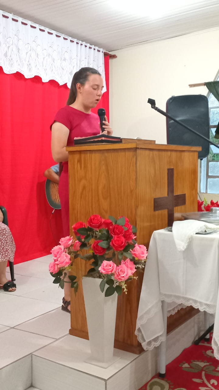 A direção do culto ficou sob a responsabilidade da União Feminina da Congregação, representada pela irmã Ledi Porto Vieira. A palavra introdutória foi ministrada pela irmã Iara, uma das pioneiras tanto da congregação local quanto da União Feminina. Ela leu o texto de João 4:24–25, trazendo uma reflexão acerca da verdadeira adoração: “em espírito e em verdade”.