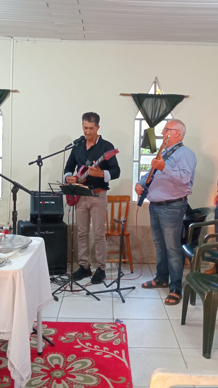 O momento de louvor contou com a participação dos irmãos locais e também dos visitantes, entre eles os irmãos Dorvair e Girlene Vega, que compartilharam hinos de adoração a Deus.