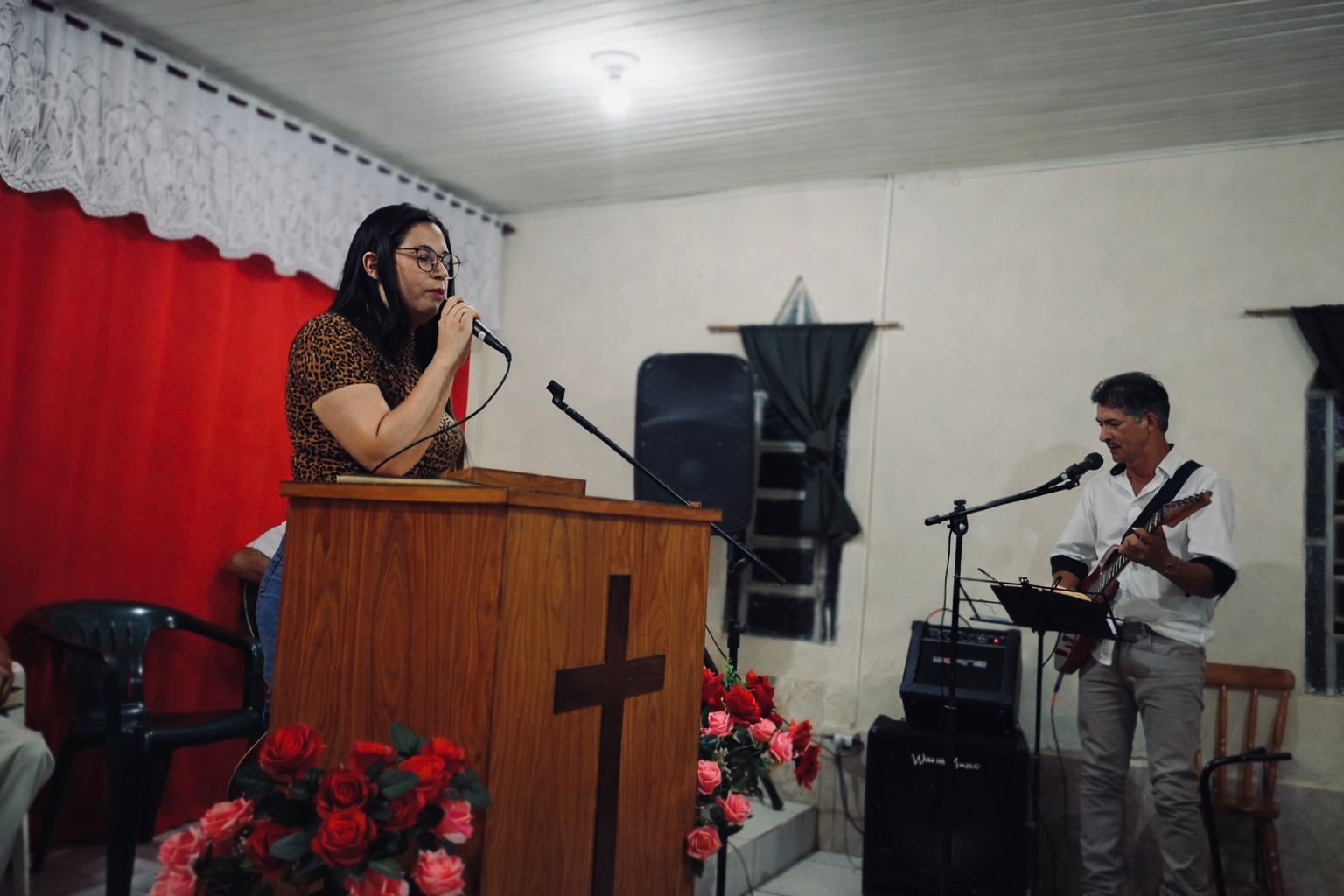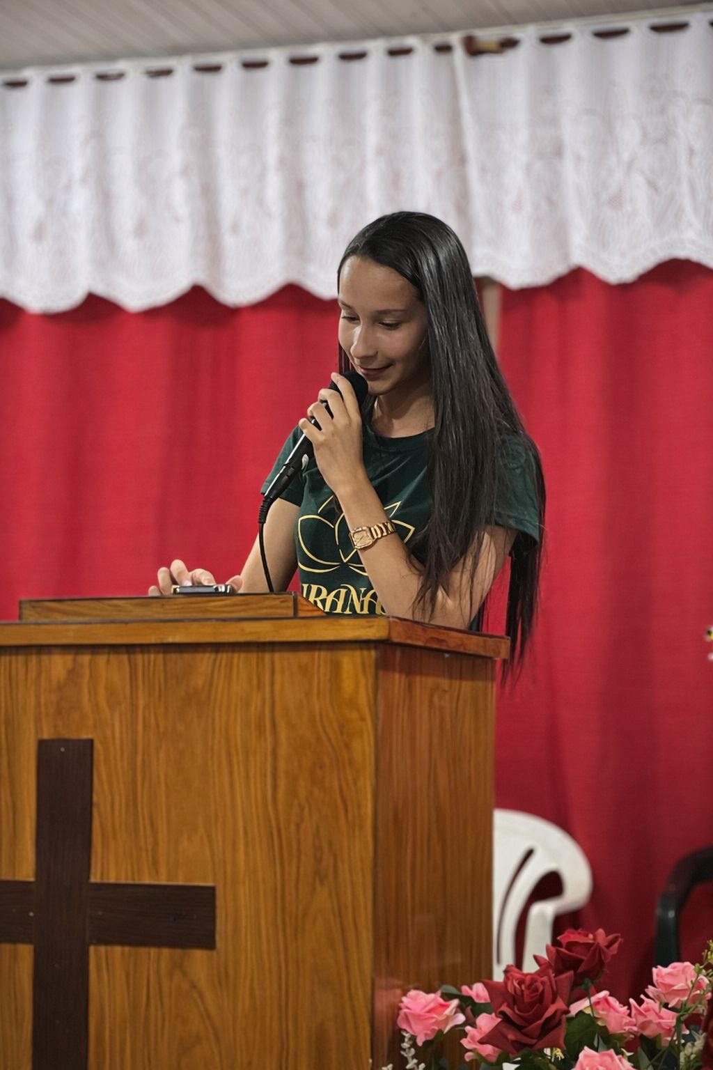 Após a leitura bíblica e a oração, a adoração prosseguiu com louvores entoados pelos irmãos da congregação local e pelos visitantes da Igreja Assembleia de Deus de Morro Redondo (ADMOR). Nesse momento de louvor, a irmã Mary Vieira realizou uma homenagem ao pastor Paulo Fraga pela passagem de seu aniversário, em nome de toda a Congregação IBC Coxilha das Flores, expressando carinho, gratidão e reconhecimento por sua dedicação ao ministério.