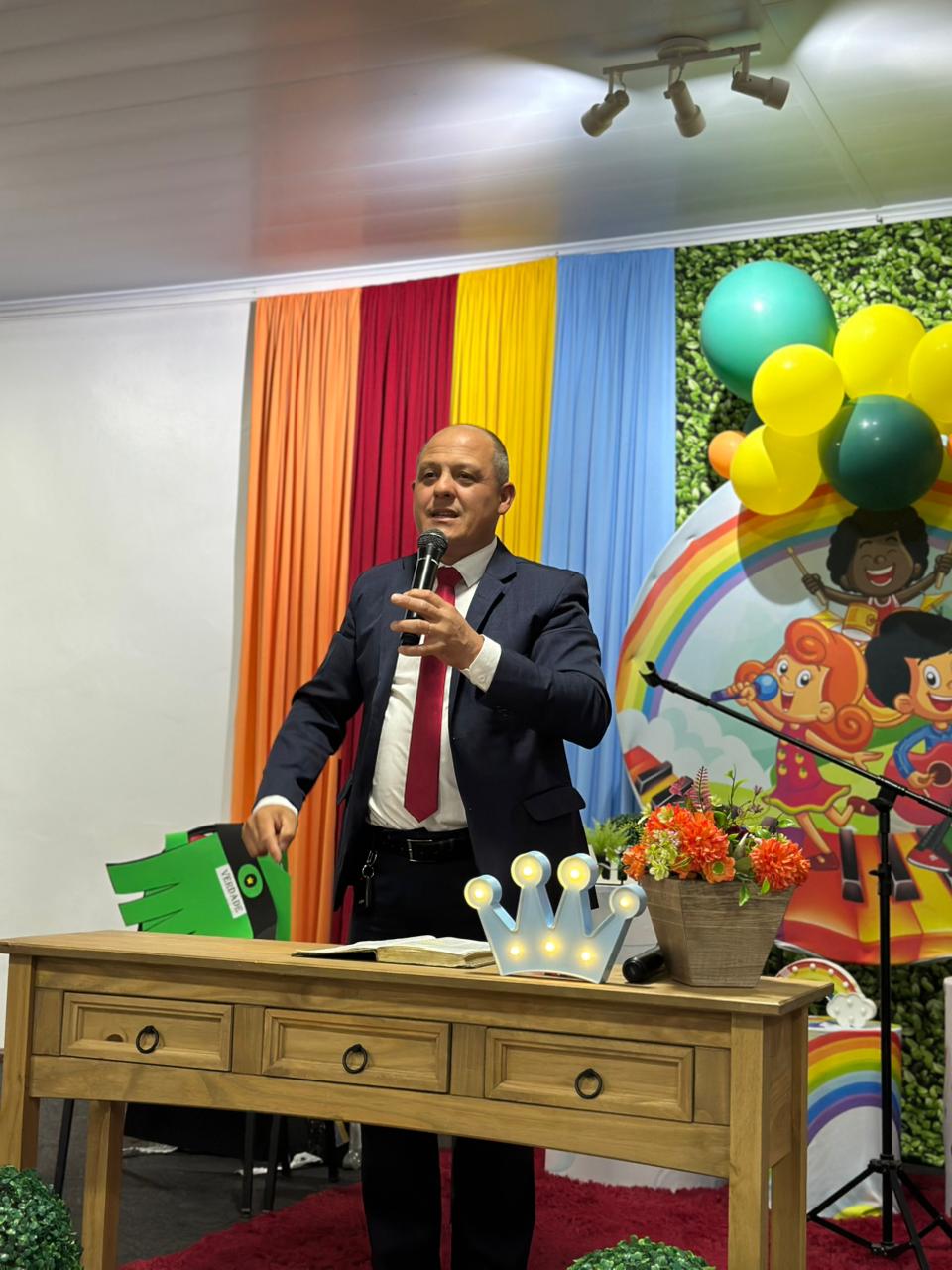 À noite, a programação continuou com um grande culto na presença do Senhor. A missionária Graciela conduziu um momento de louvor e interação com as crianças e os irmãos presentes. Em seguida, o Pastor Roberto ministrou a Palavra de Deus, abordando o tema da armadura de Deus, e o Senhor falou de forma especial com cada criança ali presente.