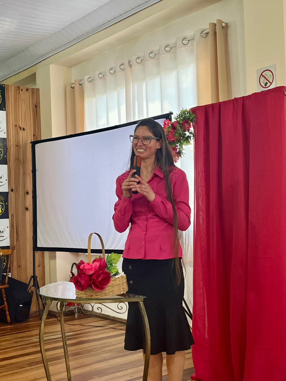 A abertura foi conduzida pela líder do departamento, Missionária Maria Bartz, que iniciou o encontro com uma leitura bíblica e uma oração. Em seguida, a irmã Tânia Xavier, tesoureira do departamento, conduziu dinâmicas de integração com as participantes, promovendo momentos de descontração e comunhão.