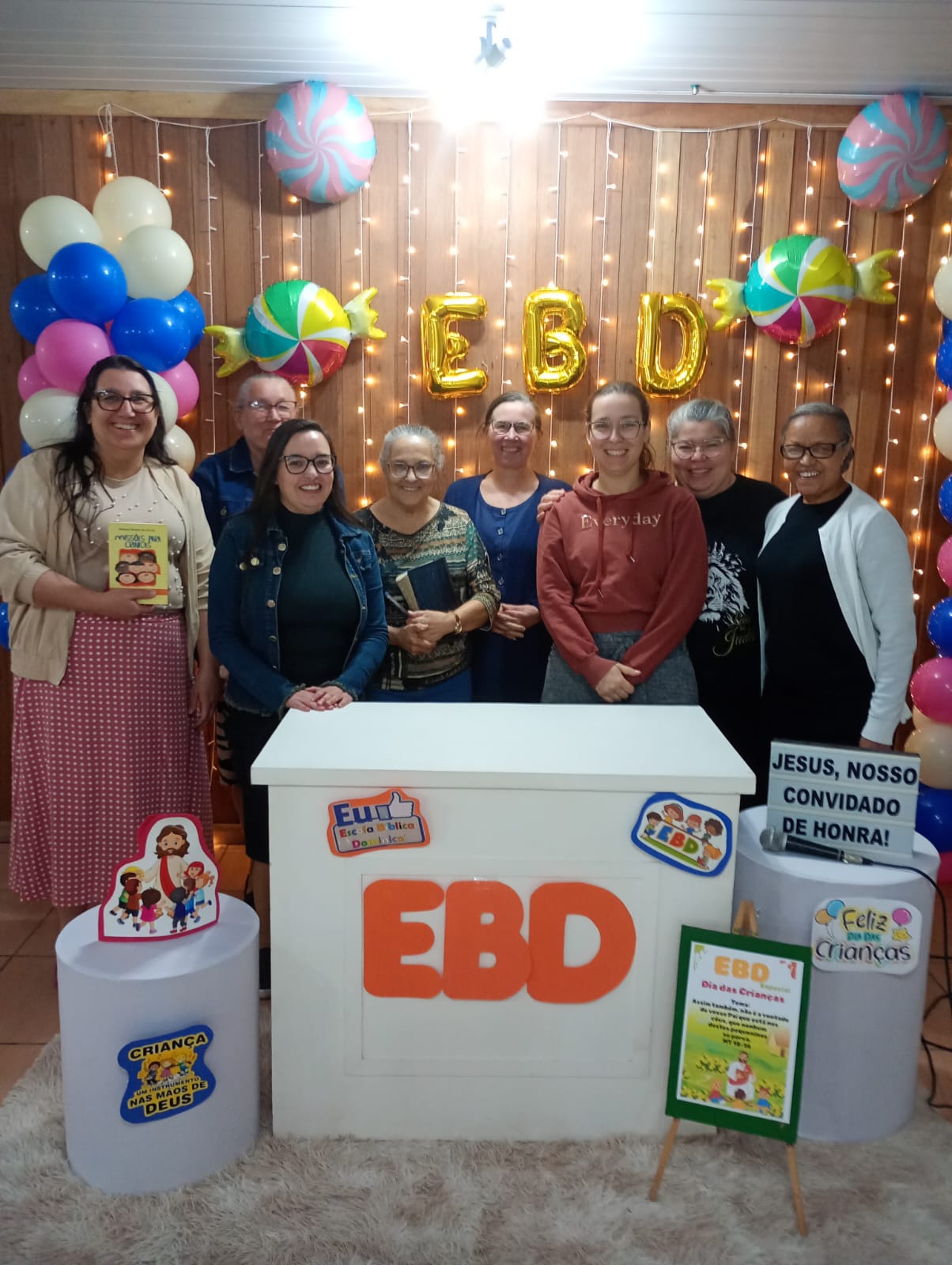 O Departamento de Escola Bíblica Dominical expressa sua profunda gratidão a Deus e a todos que fizeram parte deste momento. Em nota, agradece à Igreja Batista Conservadora, na pessoa de seu pastor responsável, Jairo Martins, pelo apoio constante ao ministério. A diretoria do departamento manifesta, com alegria, o crescimento da classe infantil e o desejo de todos de continuar orando e se esforçando para que o Senhor continue abençoando o trabalho da EBD, fortalecendo a fé de nossas crianças e capacitando Seus servos para toda boa obra.