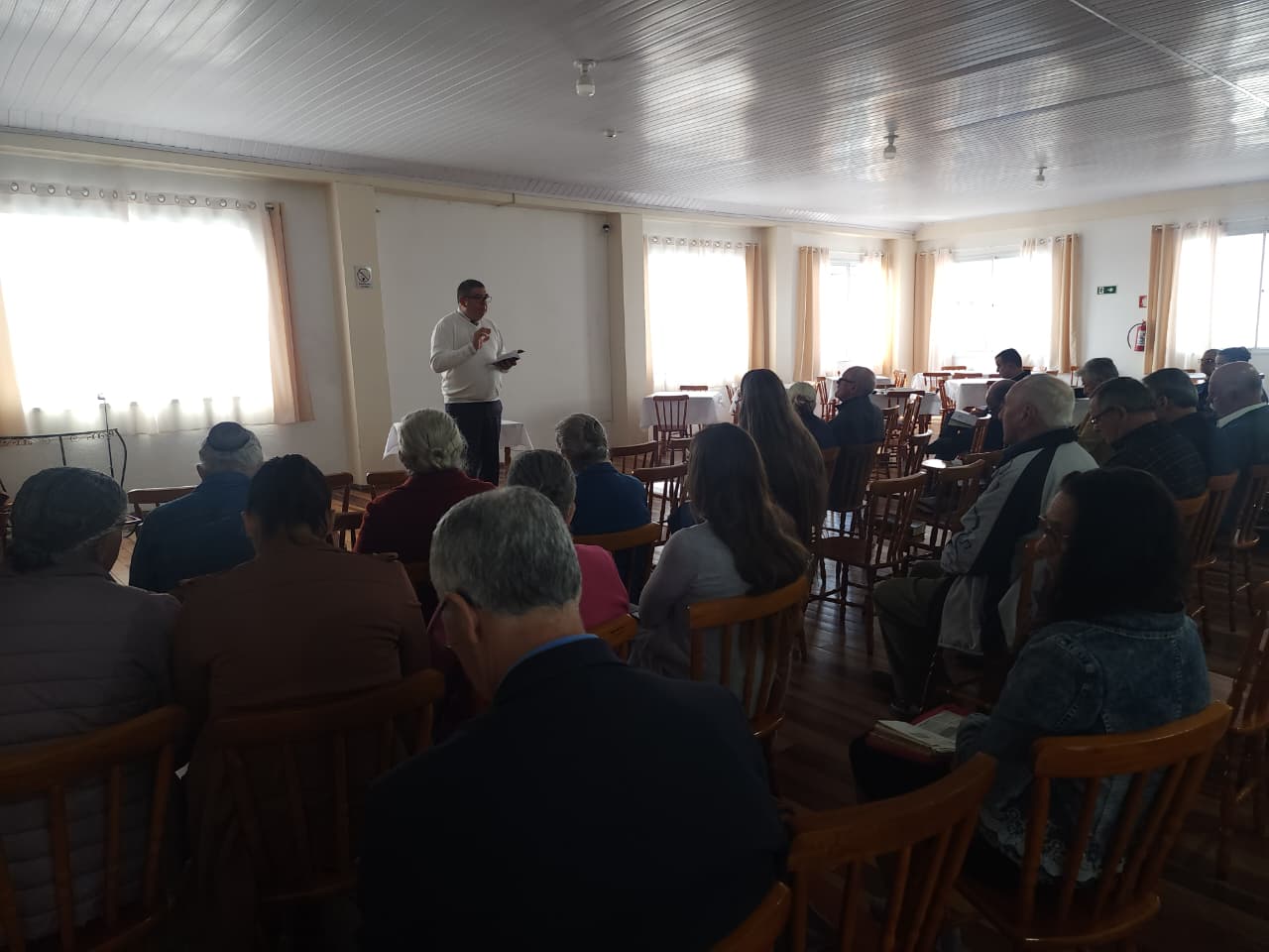 No domingo pela manhã, a Escola Bíblica Dominical aconteceu no Salão Social, onde o Pr. Misael Cabreira explicou a lição bíblica aos presentes, enquanto as crianças se reuniram no templo para acompanhar o ensino ministrado pela missionária Sara Borges e sua equipe.