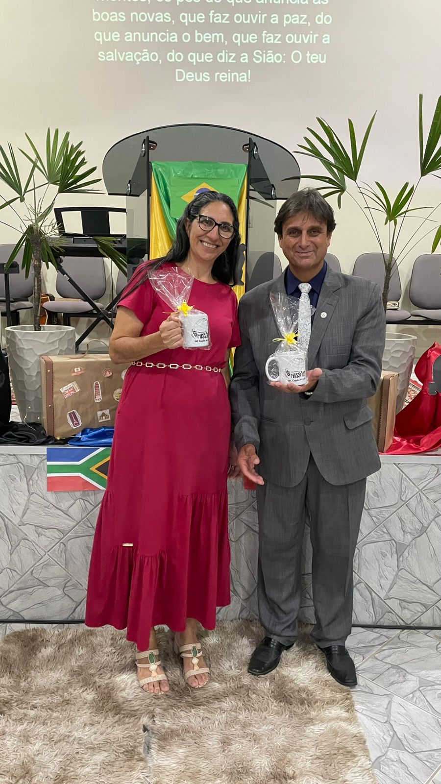 Os louvores durante toda a programação contaram com a cooperação dos membros locais, juntamente com o pastor Paulo Rober, a missionária Eunice e suas filhas. Neste mesmo dia, a missionária Eunice completava 28 anos de ministério, motivo de grande gratidão e louvor a Deus pelo seu chamado e dedicação à obra missionária. Como gesto de gratidão e hospitalidade, os convidados do Pará receberam uma singela cesta e, de forma especial, a missionária Eunice também recebeu uma carta em nome de toda a IBC do Capão do Leão, entregue pela irmã Daniela Siefert, líder da União Feminina da igreja.