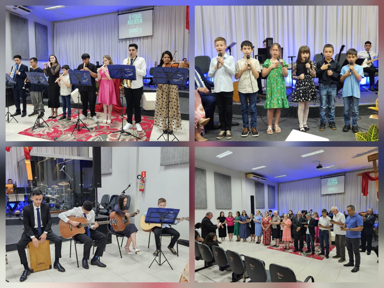 A adoração prosseguiu com louvores apresentados pelos grupos da igreja, celebrando não apenas a história da IBC Ijuí e suas muitas lutas, mas também as grandes vitórias que o Senhor concedeu ao longo de seus 113 anos de caminhada.