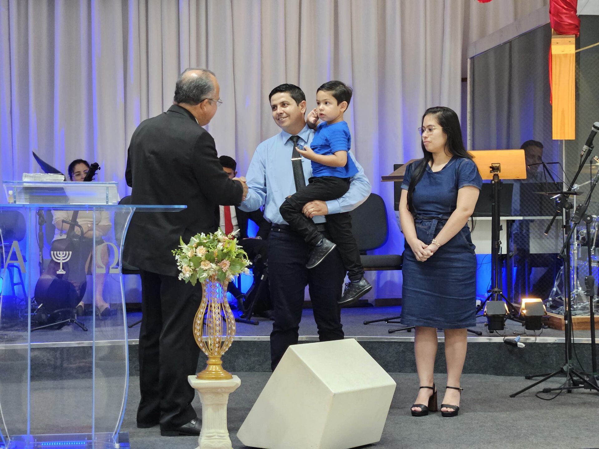 Ainda durante a vigília, a igreja recebeu com alegria novos irmãos que vieram por transferência: Diego, Lauren e o pequeno Jessé. O Pastor Delmir também conduziu a posse das novas diretorias que estarão à frente dos trabalhos da igreja no ano de 2026.