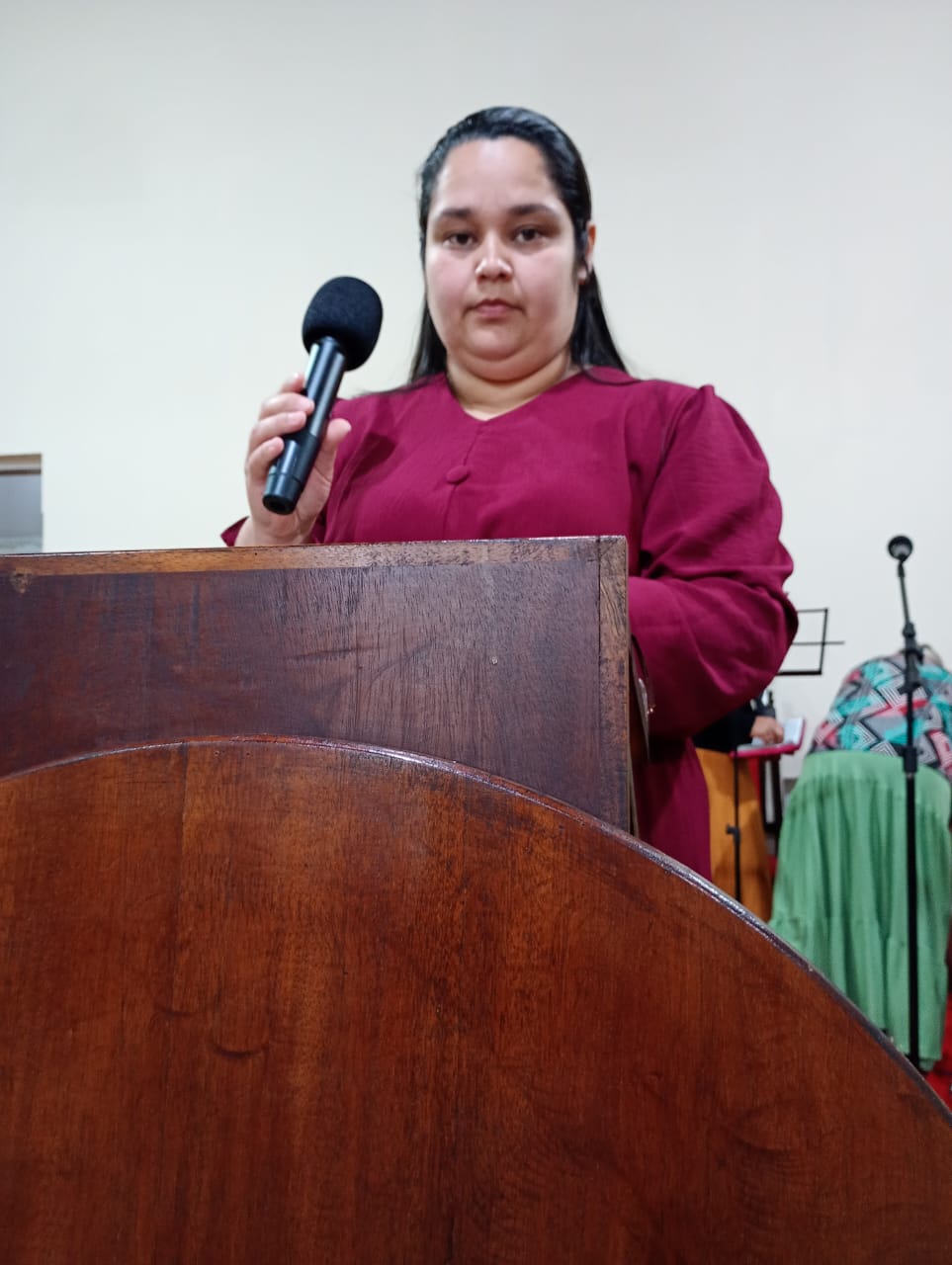 Os momentos de louvor foram conduzidos pela irmã Josiana e pelo grupo local.