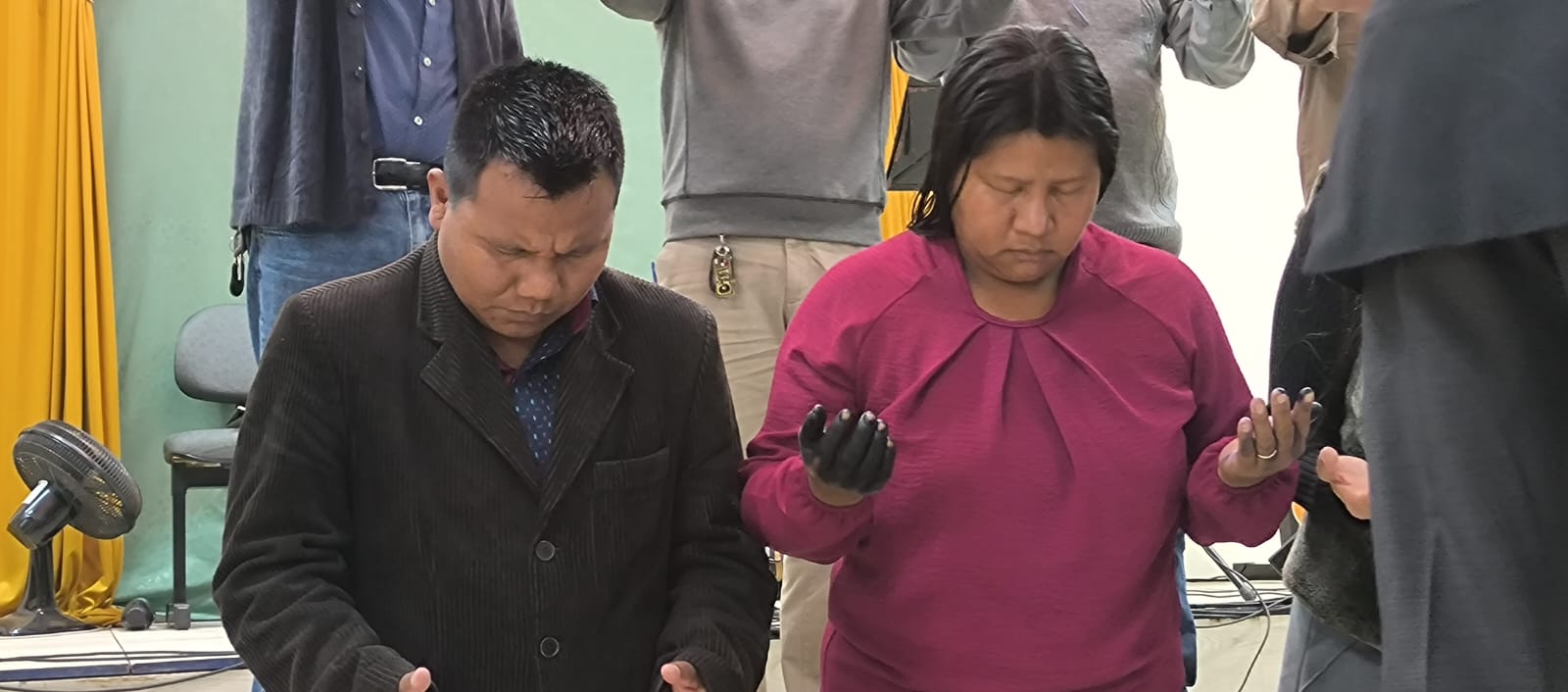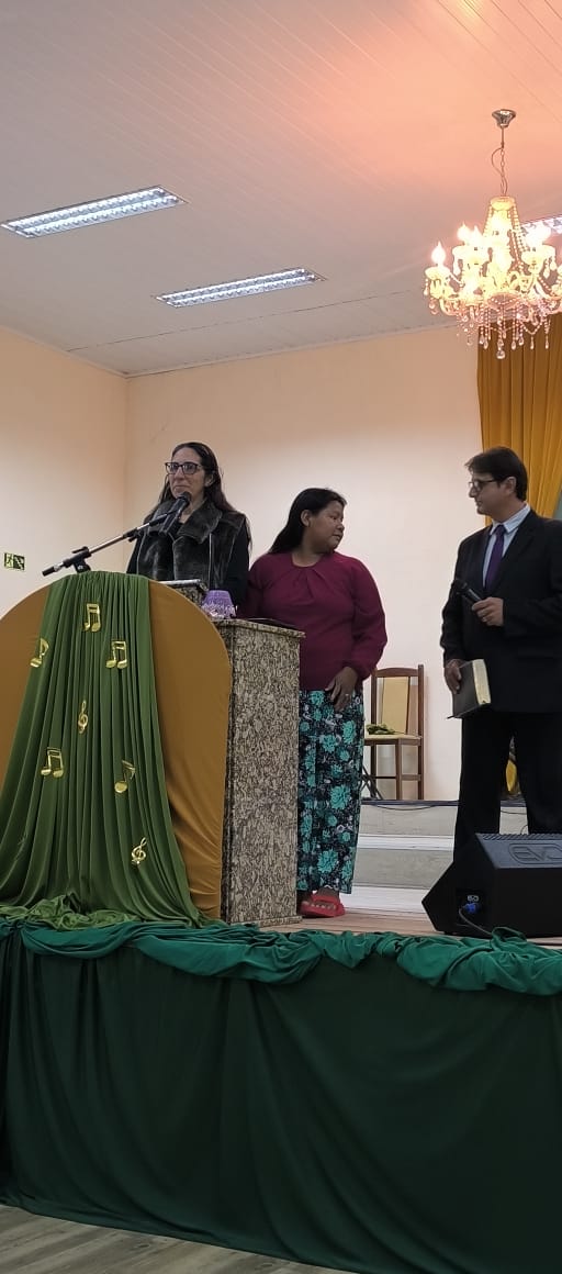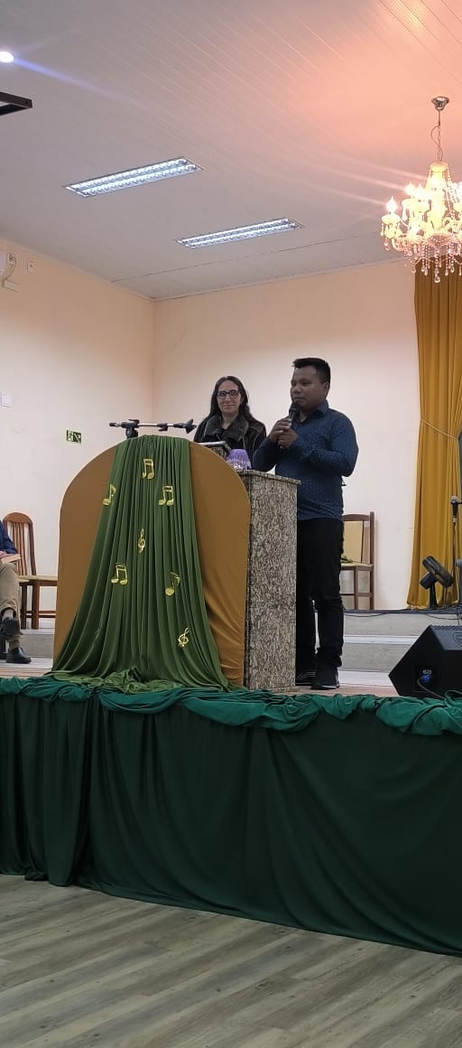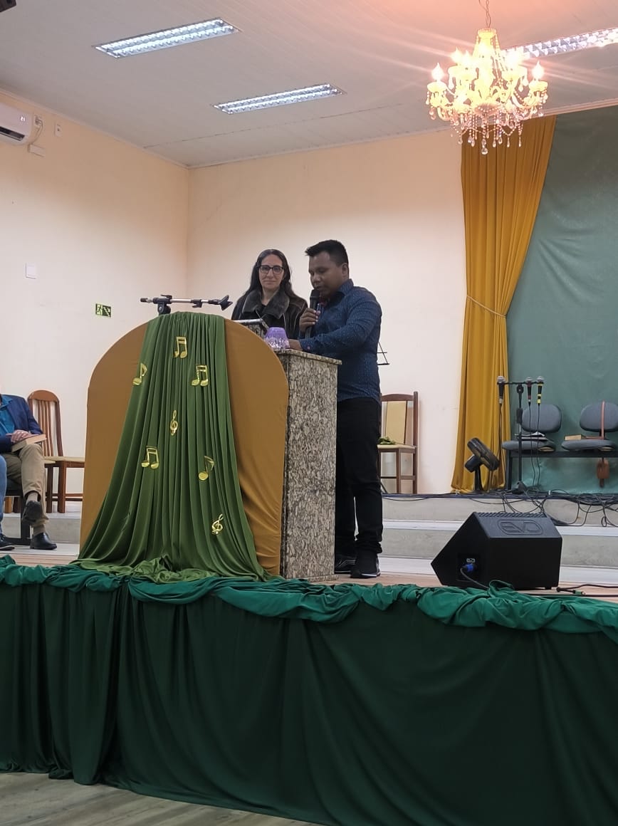 A noite foi também uma oportunidade de júbilo dobrado, pois celebramos a presença do missionário Paulo, que retornou à nossa igreja pela primeira vez após sua recente consagração ao pastorado. Foi um privilégio para a congregação recebê-lo, agora oficialmente como Pastor Paulo, ao lado de sua esposa, a missionária Eunice, que desempenhou um papel fundamental durante o culto, auxiliando na tradução e participando ativamente dos momentos de louvor.