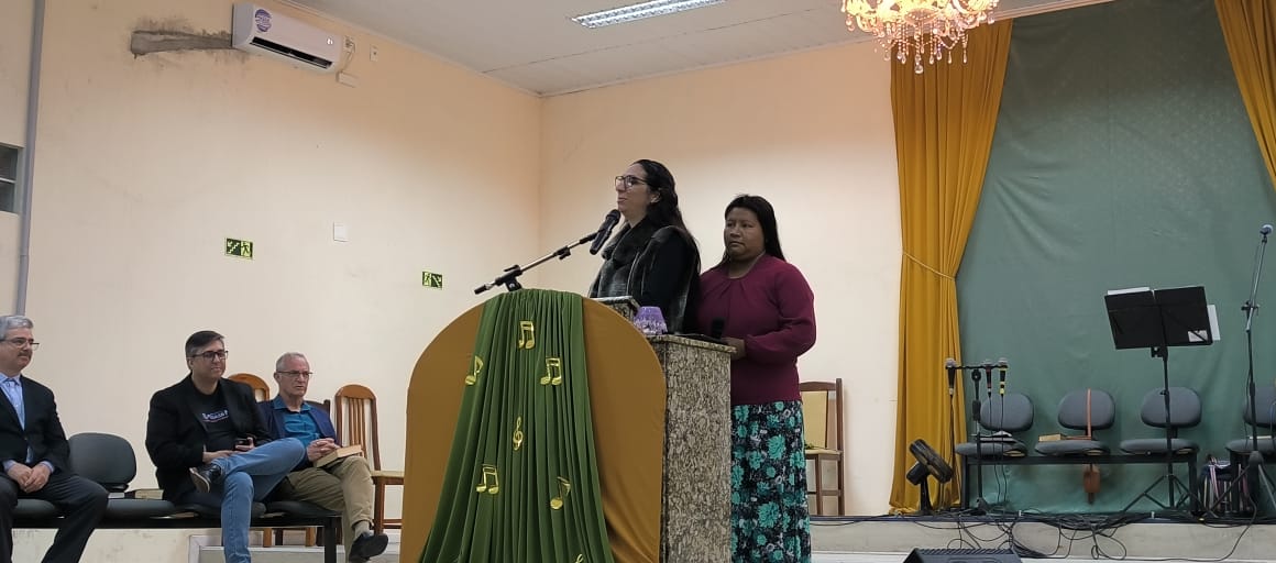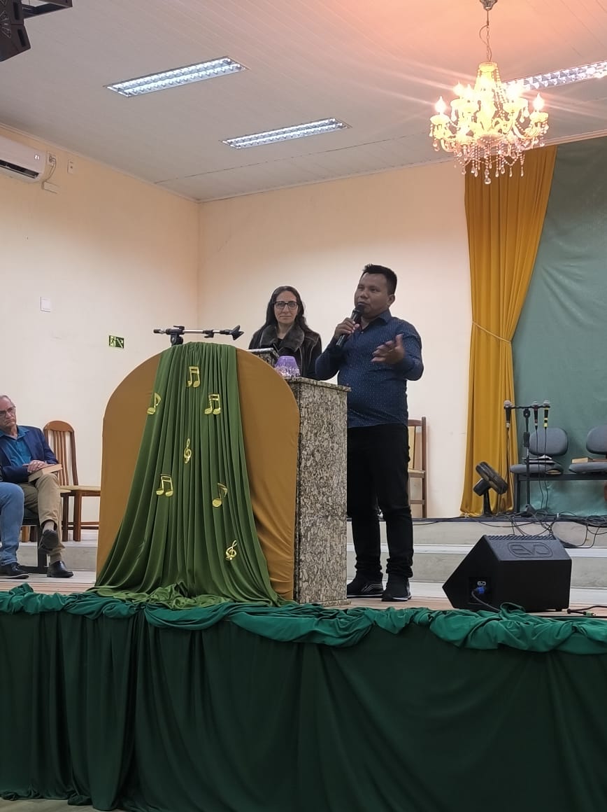 Um dos pontos altos da noite foi quando os missionários Iprere e Pãnhti, juntamente com o Pr. Paulo e Eunice, entoaram cânticos de louvor a Deus. Ouvimos “corinhos” conhecidos, cantados tanto em português quanto na língua nativa dos irmãos Kaiapó, uma demonstração tocante da universalidade do Evangelho e da unidade do Corpo de Cristo.