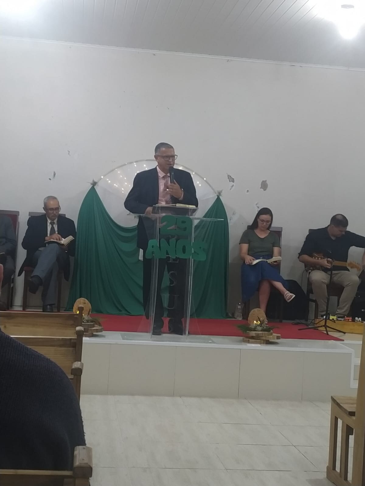 O pastor local, Ezequiel Presa, fez as saudações iniciais e também homenageou o irmão diácono Bernardino pelo tempo de dedicação na obra de Deus. O mesmo fez parte do início do trabalho da Igreja Batista na cidade de Piratini.