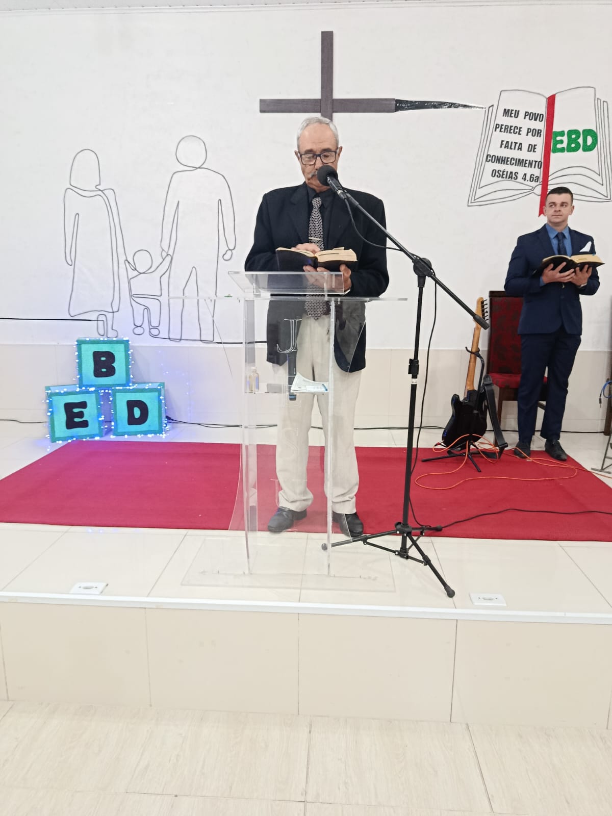 No domingo pela manhã, a Escola Bíblica Dominical foi conduzida pelo líder do departamento, diácono Isaque Soares. O pastor local, Ezequiel Presa, realizou a leitura bíblica em Apocalipse 1:1-19, e em seguida o pr. Éder da Silva ministrou a lição nº 4 da revista, que abordou o tema “A Igreja no final do primeiro século”.