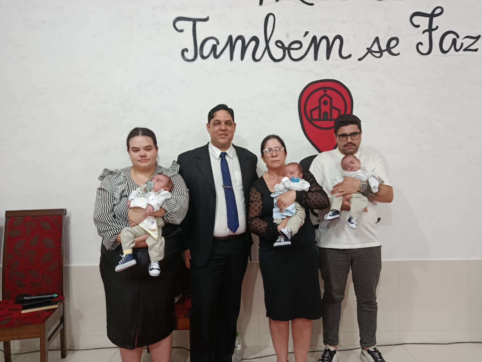 O culto também contou com um momento especial de grande alegria para a igreja: a apresentação dos trigêmeos Joseph Reiznautt, Davi Reiznautt e Benjamin Reiznautt, filhos de Adriana Reiznautt e Taisson da Silveira, que foram dedicados a Deus pela congregação.