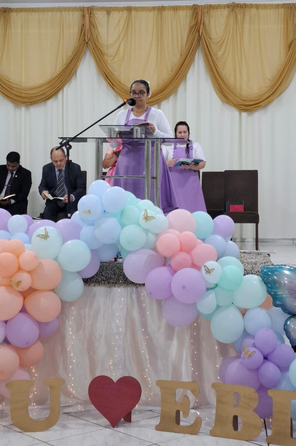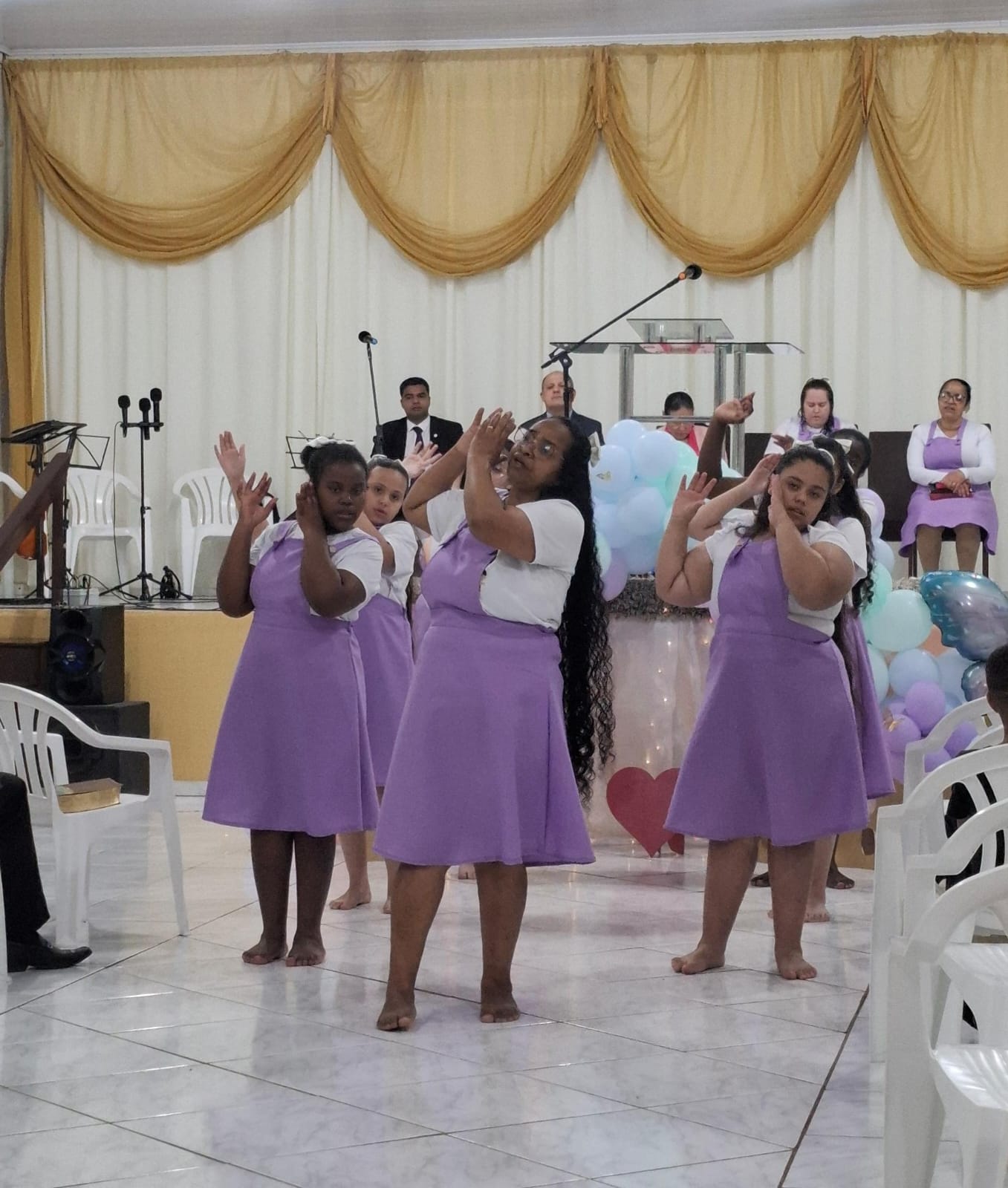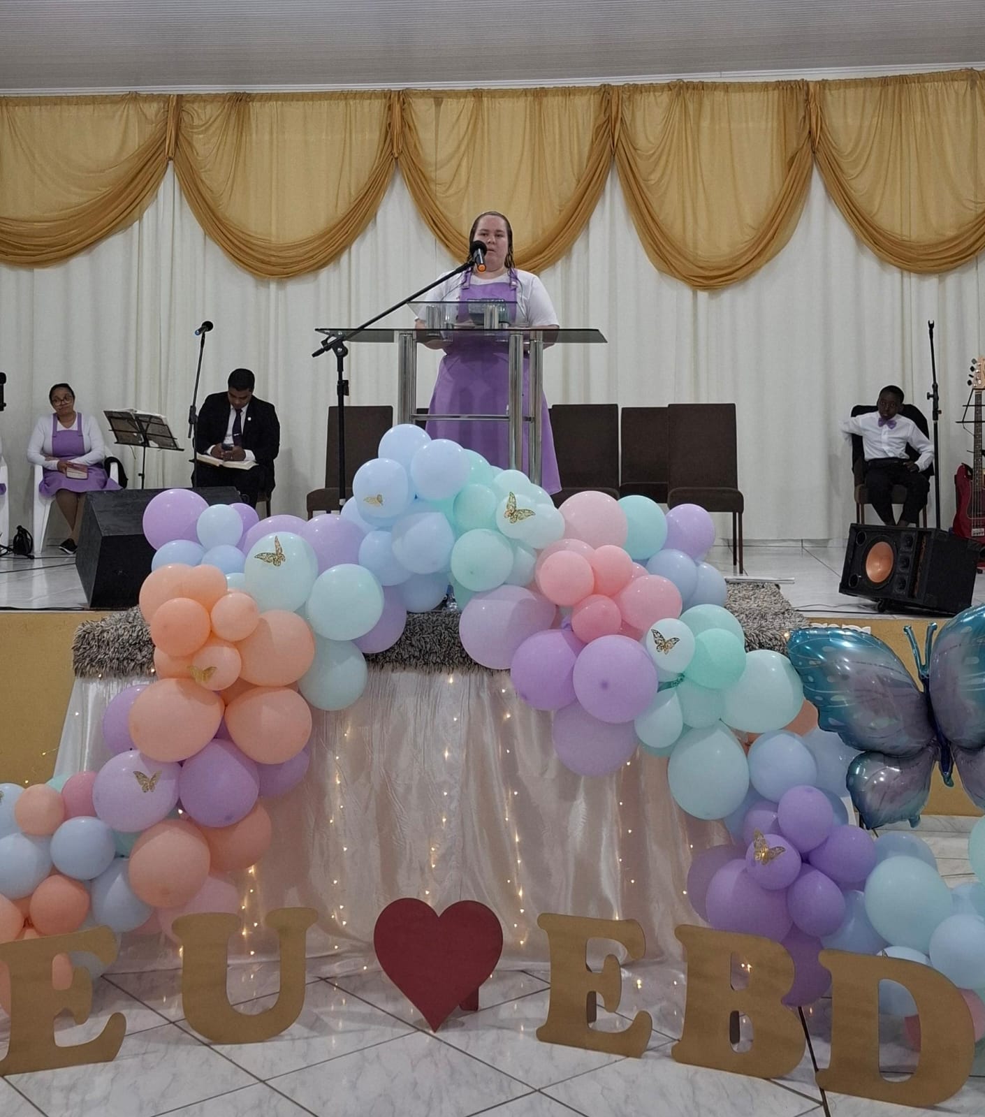 À noite, o congresso seguiu sob a direção da líder da EBD, irmã Katieli dos Santos, com a vice-líder, irmã Cleunice Xavier, fazendo a introdução baseada em 1 Samuel 3:1-10. Durante o culto, algumas alunas da EBD apresentaram uma coreografia do hino “Se eu não Te Ouvir”, emocionando os presentes.