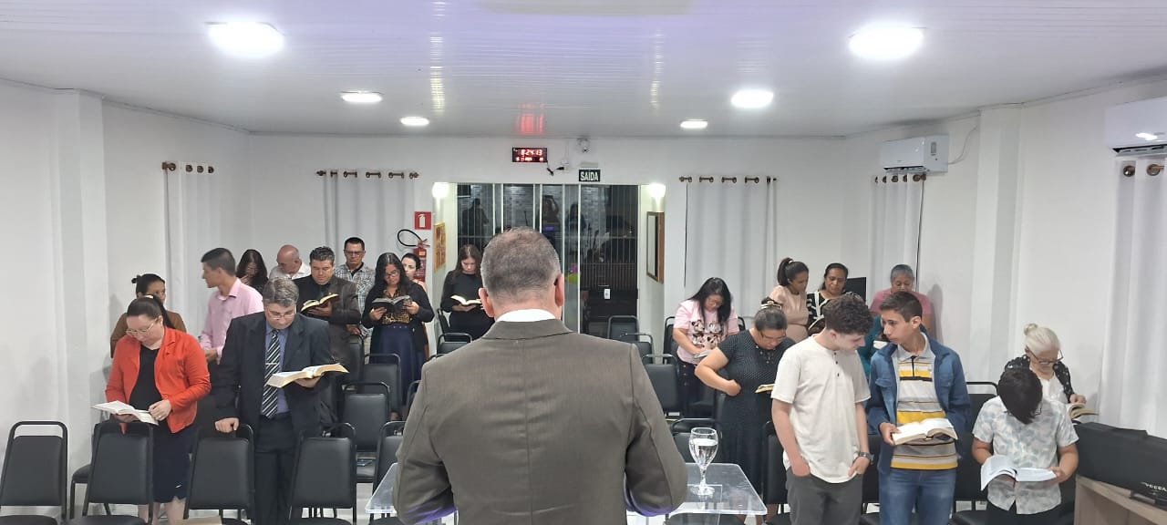 Na manhã de domingo, dia 16, foi realizada a EBD comemorativa. A classe infantil ficou sob responsabilidade da irmã Luciana, que ministrou uma aula dinâmica e ilustrativa, utilizando a história de Mariana e o conhecido Livro Sem Palavras, recurso que apresenta de forma clara e simples o plano de salvação para as crianças. Na classe dos adultos, o ensino foi conduzido pelo pastor Eder Oberdan, que ministrou a lição da revista da EBD, trazendo reflexões edificantes aos participantes.
