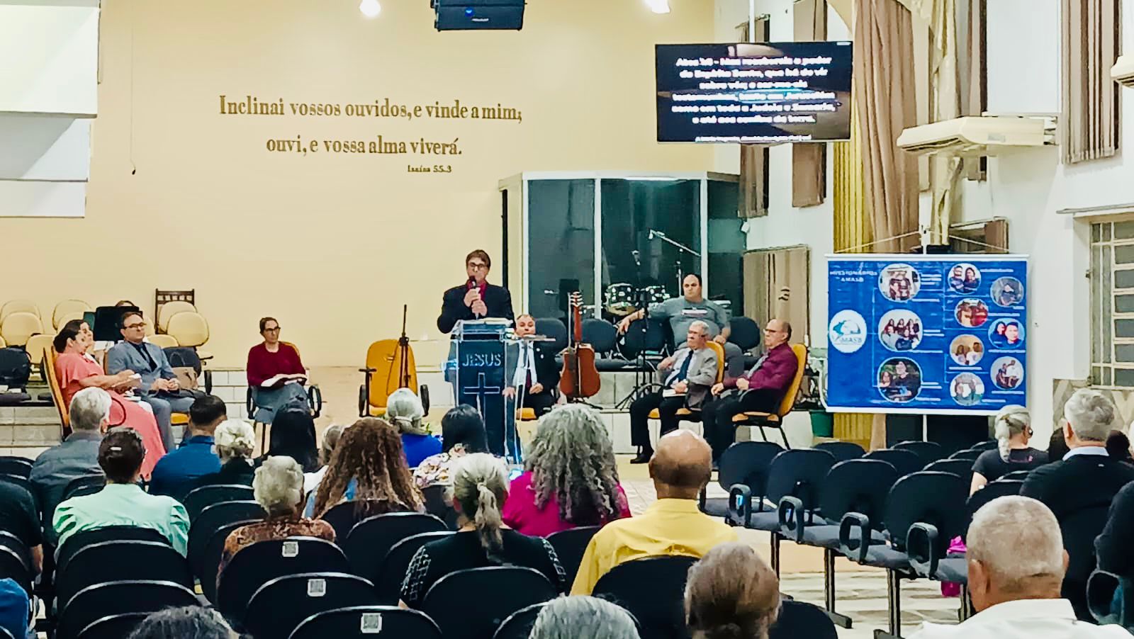 Na sequência, o culto da noite reuniu a congregação para um tempo de louvor e aprendizado. Durante a celebração, os missionários apresentaram a AMASB (Associação Missionária de Ação Social Batista), explicando um pouco mais sobre o trabalho realizado e os desafios enfrentados no campo missionário.