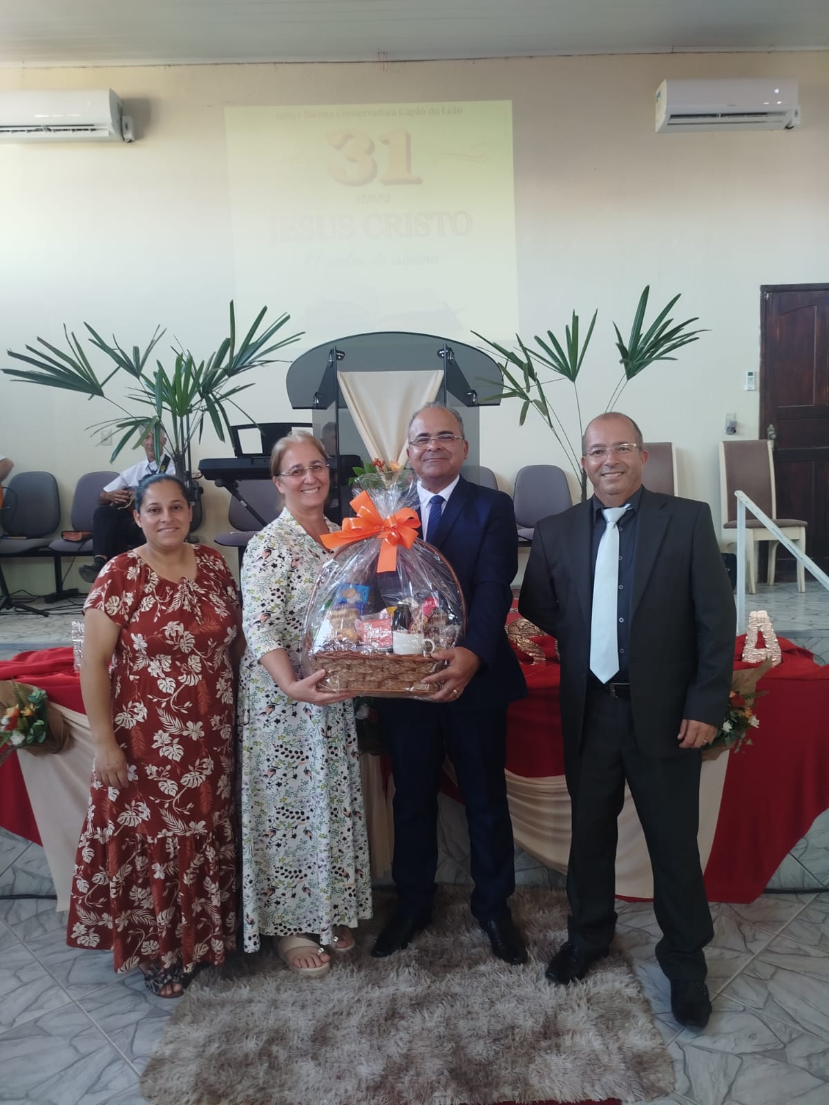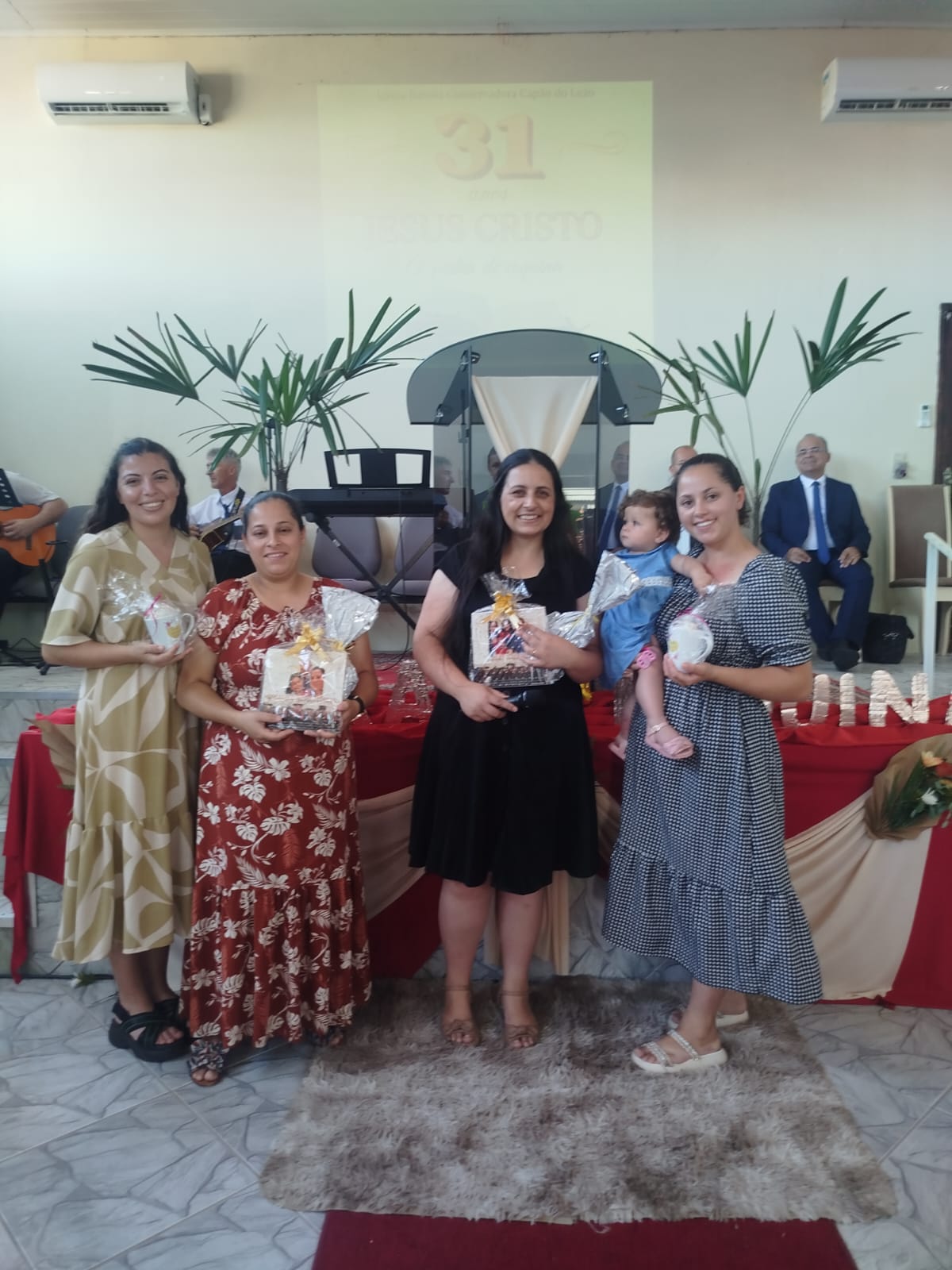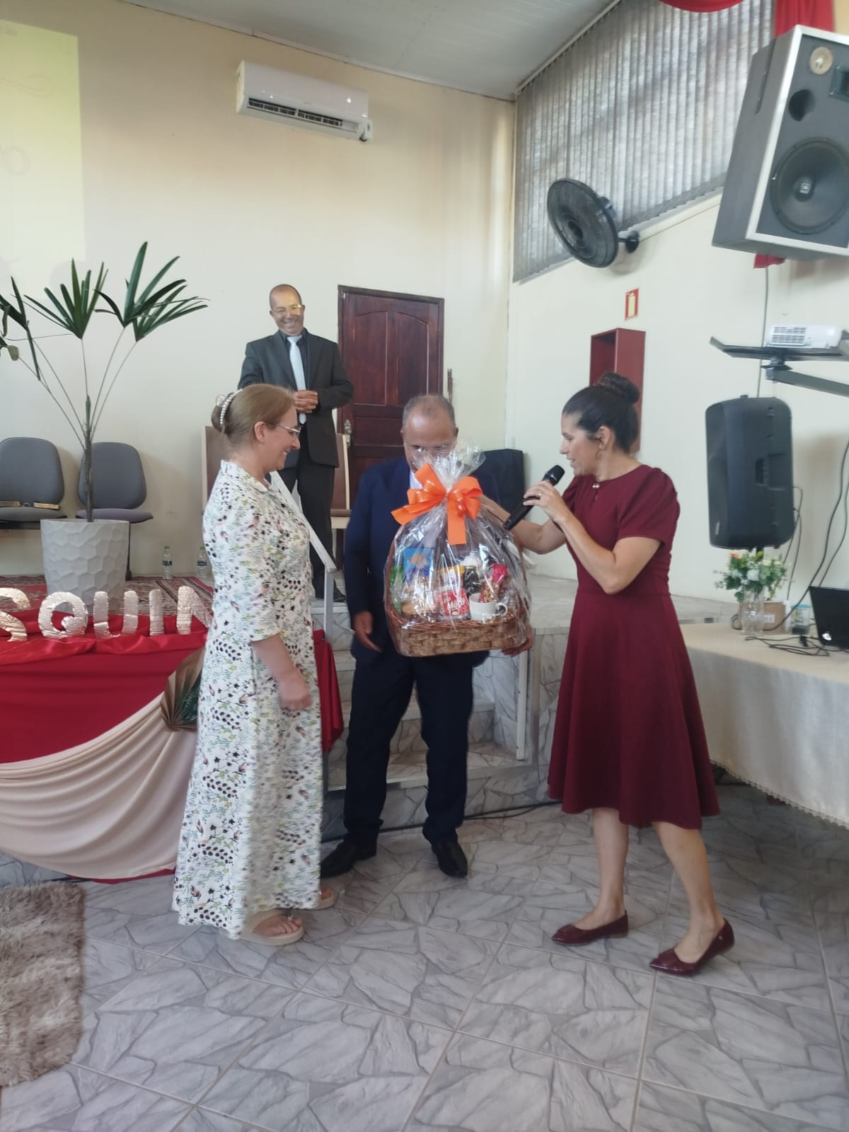 Ao final, os convidados, Pastor Delmir Ramão Paz e sua esposa, irmã Miriam Paz, receberam uma cesta em gratidão pela participação na campanha. A presidente da União Feminina, irmã Daniela Siefert, presenteou as irmãs, e ela e a líder do Grupo de Intercessão, irmã Jenifer, também foram homenageadas.