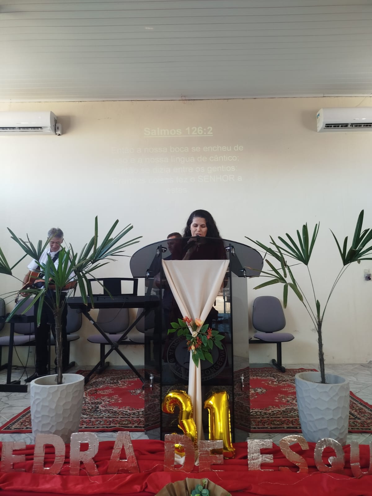 O momento de louvor contou com a participação do Grupo de Intercessão, seguido pelo louvor da irmã Emanuella Siefert e do Quarteto. Após o testemunho da irmã Delma Farias, a igreja uniu-se em adoração por meio de dois hinos congregacionais. Encerrando o culto, o Pastor Delmir Ramão Paz ministrou a Palavra de Deus, fundamentada no tema do evento: “Jesus Cristo, a Pedra de Esquina”.