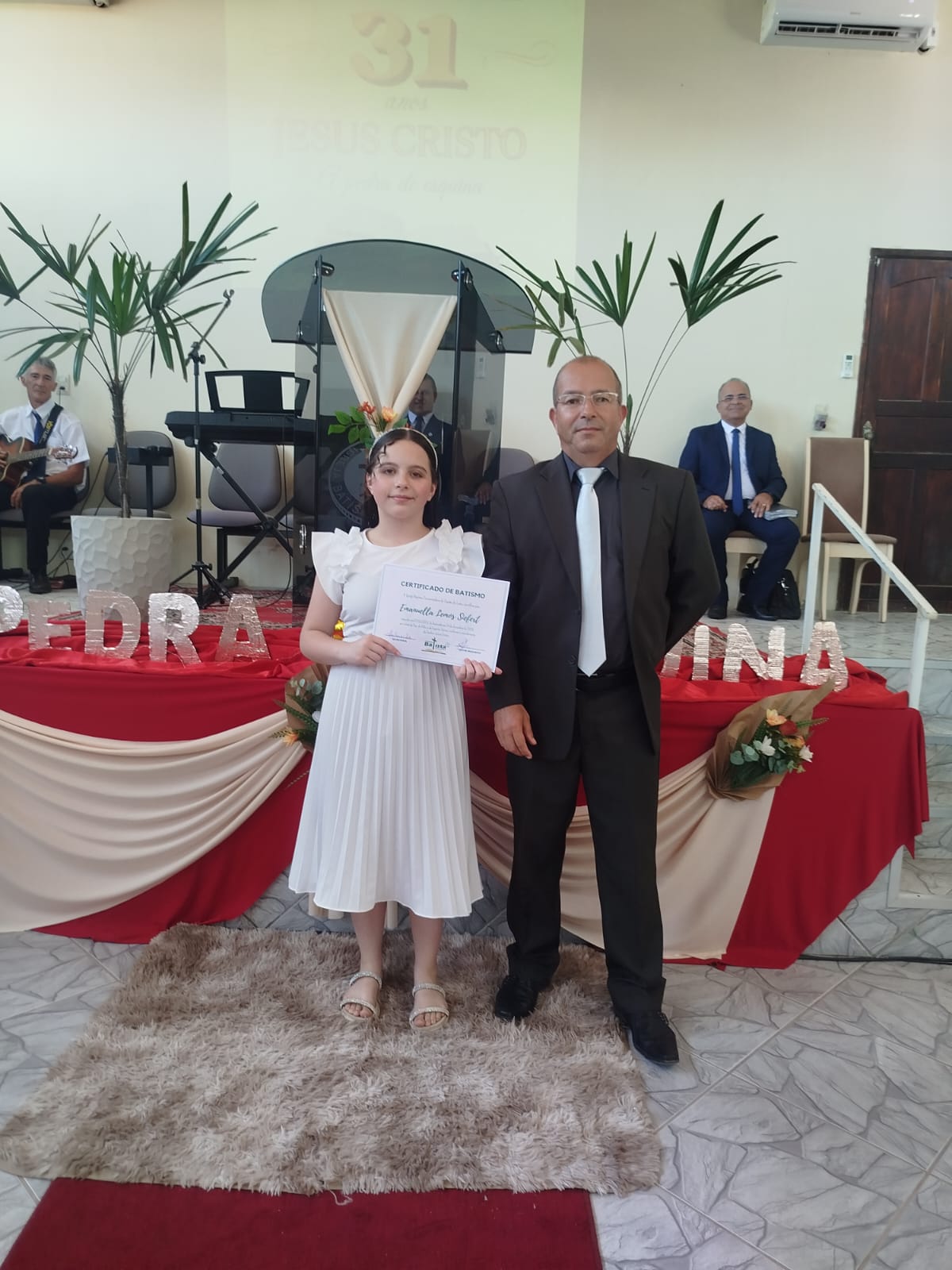No período da tarde, aconteceu a cerimônia de batismo, na qual a querida irmã Emanuella Siefert teve o privilégio de descer às águas batismais, testemunhando publicamente sua fé em Cristo. Logo a seguir, ocorreu o encerramento da programação com culto. Cooperaram no louvor a irmã Mary Vieira, o Coral Emanuel, o Coral Maranata e os demais irmãos locais presentes. Em seguida, o Pastor Delmir Ramão Paz ministrou novamente a Palavra de Deus, sendo usado poderosamente como canal de bênçãos para a edificação de todos os presentes.