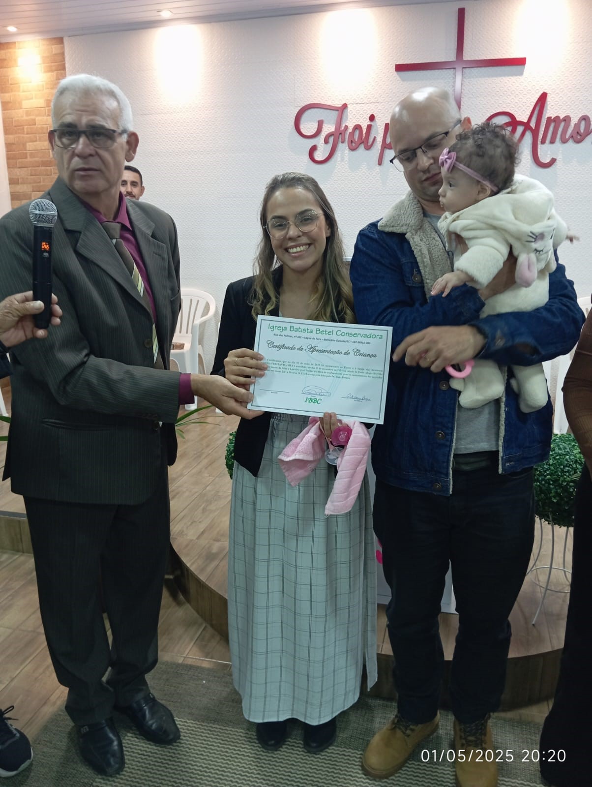 Na oportunidade, citou a importância de união e apoio familiar na jornada que se inicia. Logo após, o pastor Jesus Borges orou pela pequena Aurora, apresentando-a ao Senhor Jesus. Foi uma ocasião especial, repleta de alegria e gratidão.
