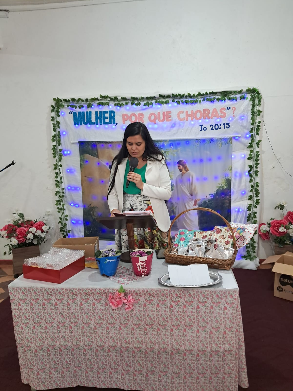 A programação, sob a liderança das irmãs Débora Carvalho e Nair Cruz, respectivamente, presidente e vice-presidente do DEFEBC, começou na tarde de domingo. Na ocasião, foi ministrada uma palestra pela irmã Jéssica Charão, da cidade de Ivoti-RS, preletora convidada. O tema foi “Mulher, por que choras?”, com base no texto de João 20:15. Após a palestra, as participantes participaram de uma abençoada confraternização, um coquetel com salgados, bolo e chá.