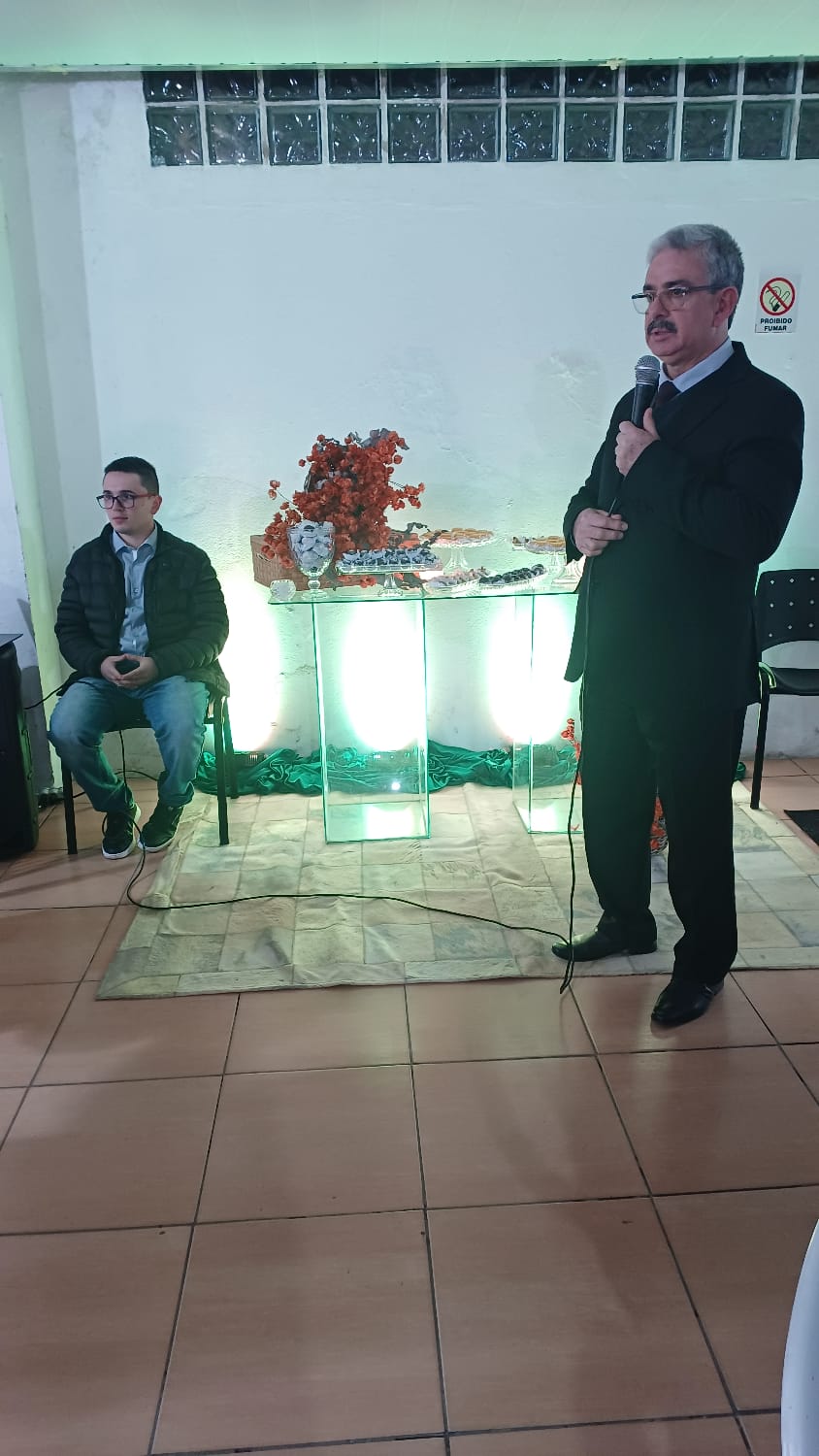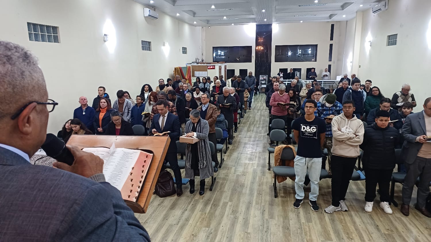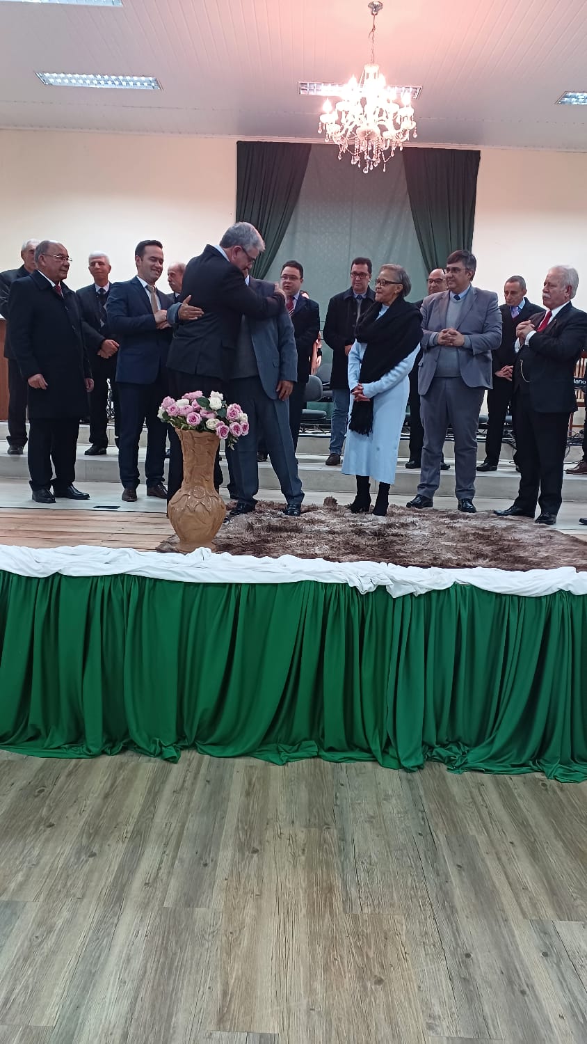Em seu momento de fala, o Pastor Gideão compartilhou que, por 40 anos, orou pela vida de seu amigo pessoal, irmão Gilmar Mesquita, até que ele aceitasse a jornada da fé com Jesus. Além disso, o Pastor Gideão lembrou da oportunidade que Deus lhe concedeu em batizar seu querido amigo Gilmar Mesquita na cidade de Bagé.