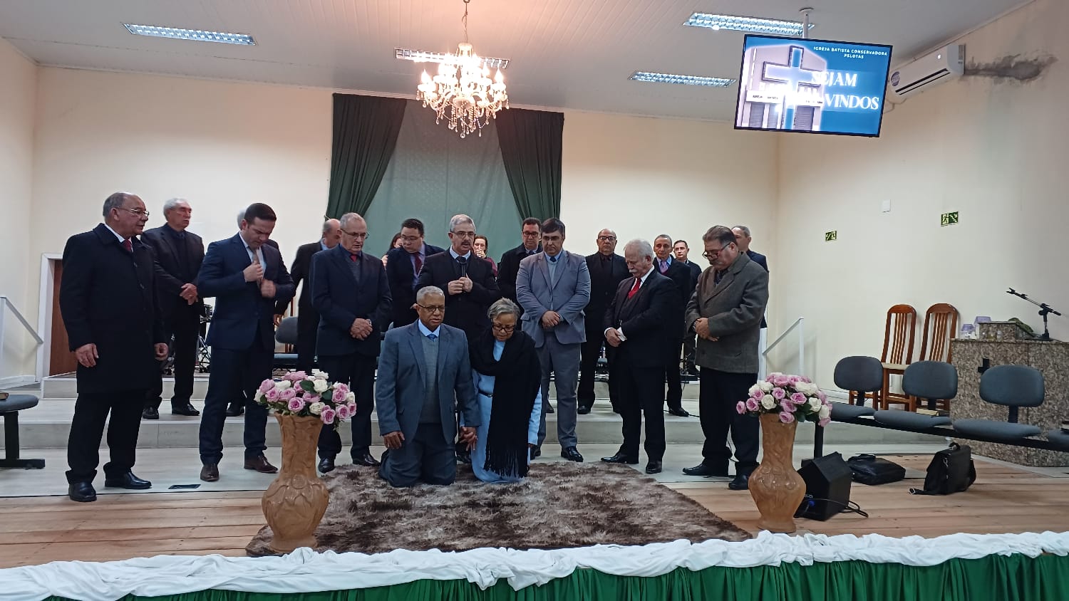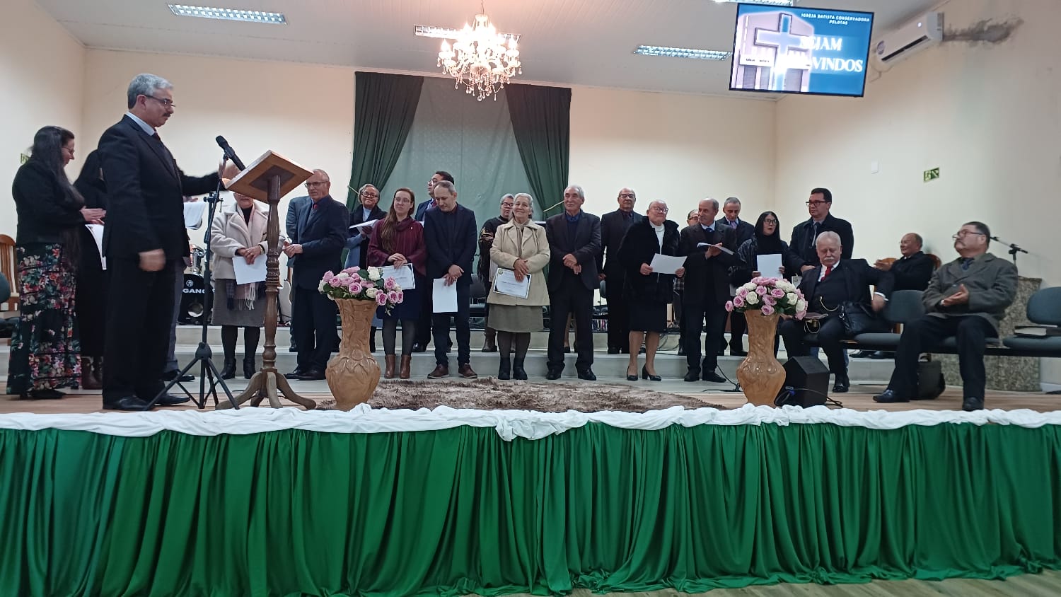 Durante a cerimônia, o Pastor Jairo Gonçalves Martins, presidente da IBC Pelotas, conduziu o culto, mencionando o texto de Tito 1.1-5, onde destacou as funções de presbítero e sua relevância no ministério e na obra de Deus. A igreja teve lotação total, contando com a presença de irmãos de várias cidades da região, além de amigos e familiares do irmão Gilmar Mesquita. Entre os participantes, o Pastor Gideão Otacílio Bezerra Muniz foi convidado especial para enriquecer a cerimônia de consagração. O Pastor Gideão Muniz esteve acompanhado de sua esposa, irmã Noemi Monteiro Muniz, e seu filho, Pastor Joezer Monteiro Muniz, que participou solando louvores ao Senhor Deus.