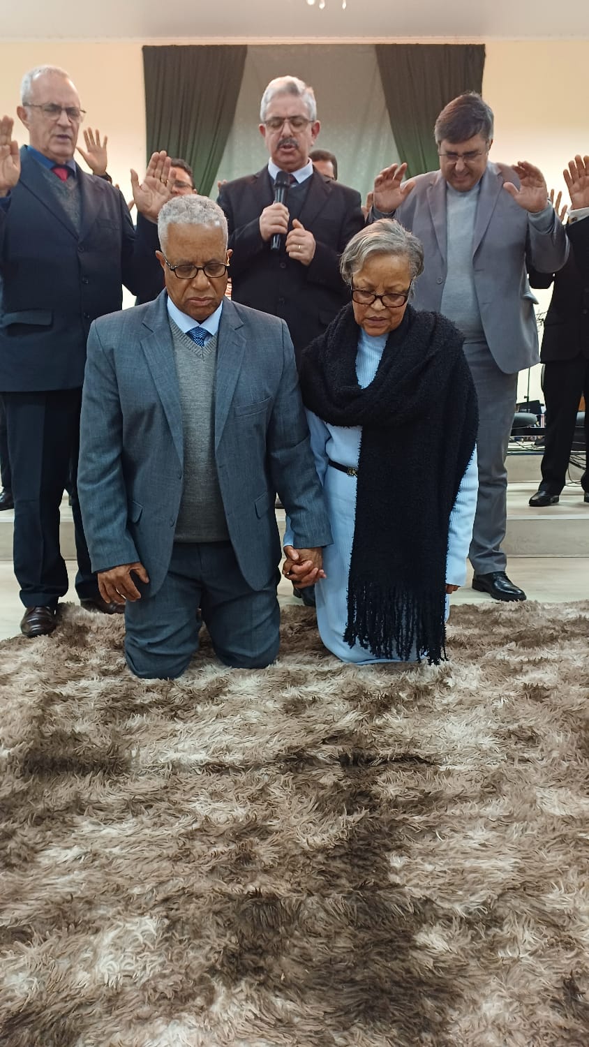 Logo após, o casal, irmão Gilmar Mesquita e sua esposa Dinair da Silva Lima, receberam oração com imposição de mãos dos pastores e obreiros. Foram momentos emocionantes, evidenciando a graça e misericórdia de Deus.
