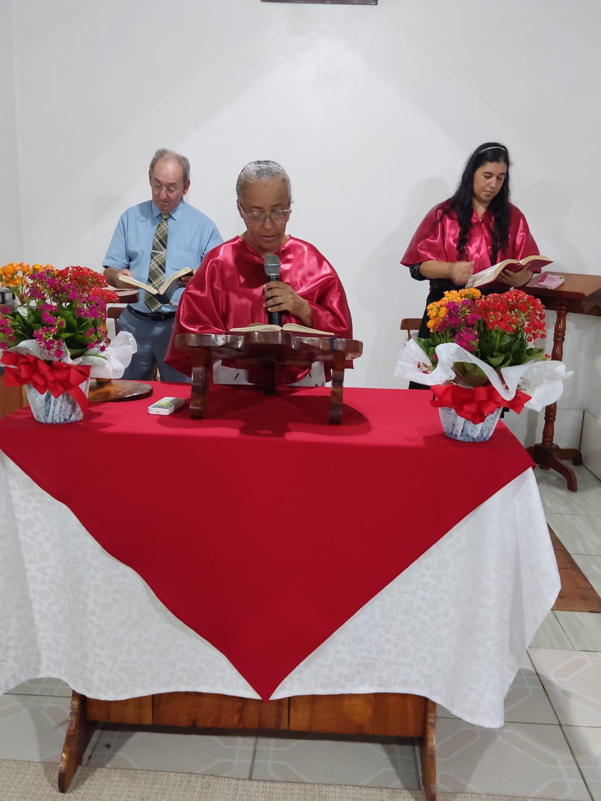 O evento teve início no sábado, 8, às 20h, com a direção da irmã Micheli Bortolotti. Logo após, a irmã Maria Rodrigues trouxe a palavra introdutória, e em seguida aconteceu o momento de louvor, onde o irmão Rosimar Figueiredo e a irmã Rosilange Figueiredo estiveram cantando. O Coral Heroínas da Fé, que tem a regência da vice-líder do departamento feminino, irmã Maria Rodrigues, também louvou ao Senhor durante o evento. Para ministrar a palavra de Deus, foram convidados a irmã Ivonete Marques e o seu esposo, diácono Sérgio Marques. (IBC/Eldorado do Sul). O texto base da palavra foi centralizado em 1 Samuel 7:11. “Até aqui nos ajudou o Senhor.”
