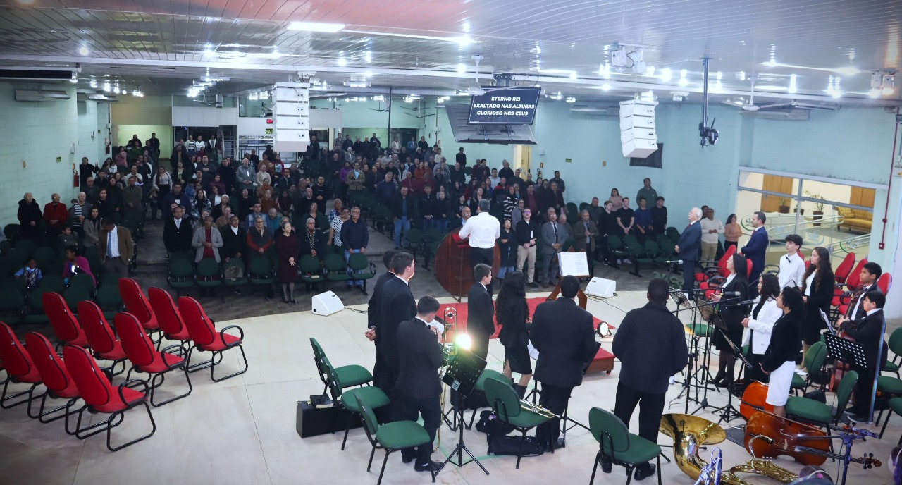 Sob a regência do jovem maestro Miquéias Paiva, a orquestra apresentou uma seleção de hinos que emocionou os presentes e exaltou a fé cristã. O momento musical teve papel central na programação, reforçando o compromisso do grupo com a excelência na adoração por meio da música.