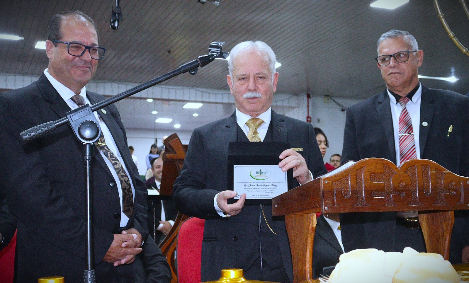 No dia 08 de março, no templo sede da IBC Bagé, o Pastor Gideão Muniz realizou a celebração de 46 anos de ministério. Muitas lideranças da Convenção Batista Conservadora (CBC) prestigiaram o evento, entre eles: Pastor Delmir Paz, Presidente da CBC; Pastor Valdonei Manoel, Presidente da Ordem de Ministros Batista Conservadores (OMBC); Pastor Éder Oberdan, Diretor do Seminário Teológico Batista Gilgal (STBG), Pastor Anderson Quadros, Presidente da Associação Missionária de Ação Social Batista (AMASB); Pastor Alvacyr Costa; Missionários Paulo e Eunice Costa; Pastor Primitivo Preza, Pastor Delvair Melo, Pastor Davi Schemiele; Pastor Manoel Machado; Pastor Deivid Barbosa; Evangelista Fabrício Camargo; Presbítero Gilmar Mesquita.