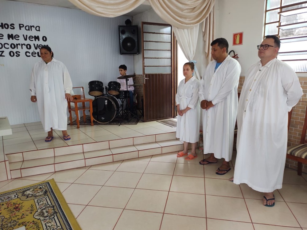 Na noite de ontem (20) foi realizado, no templo da IBC Betel Caxias do Sul, o batismo de quatro novos irmãos: Anderson Tuigo dos Santos, Fátima Beatriz dos Santos, Daniel Ferreira e Daniela Silva Ferreira. No mesmo culto, os membros celebraram, antecipadamente, o Natal de Cristo, e acompanharam a cerimônia de promoção dos Guerreiros de Cristo.