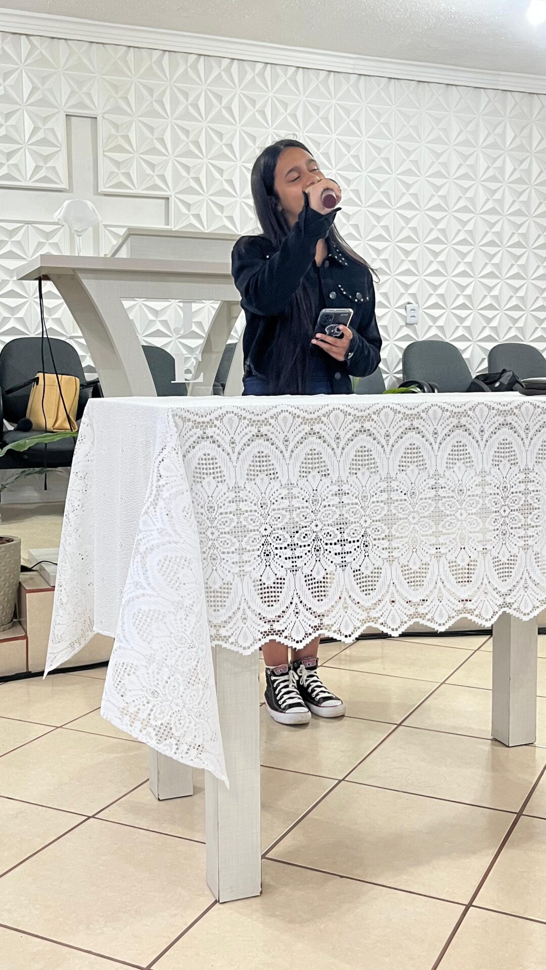 A programação continuou no domingo pela manhã, com um tempo de louvor e estudo bíblico. A irmã Eduarda conduziu um momento especial de adoração, levando a igreja a uma atmosfera de sensibilidade espiritual.