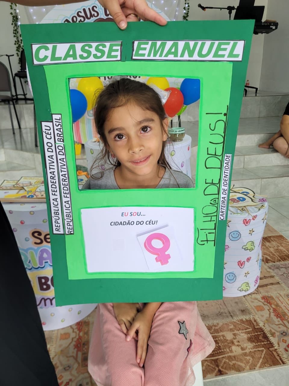 As crianças foram recebidas com carinho pelas “tias” da classe, e aprenderam a Palavra de Deus a respeito de “A identidade de Jesus em Mim” – nos tornamos Filhos de Deus quando recebemos Jesus Cristo como nosso Salvador Pessoal,e passamos a ser, também, cidadãos dos Céus.