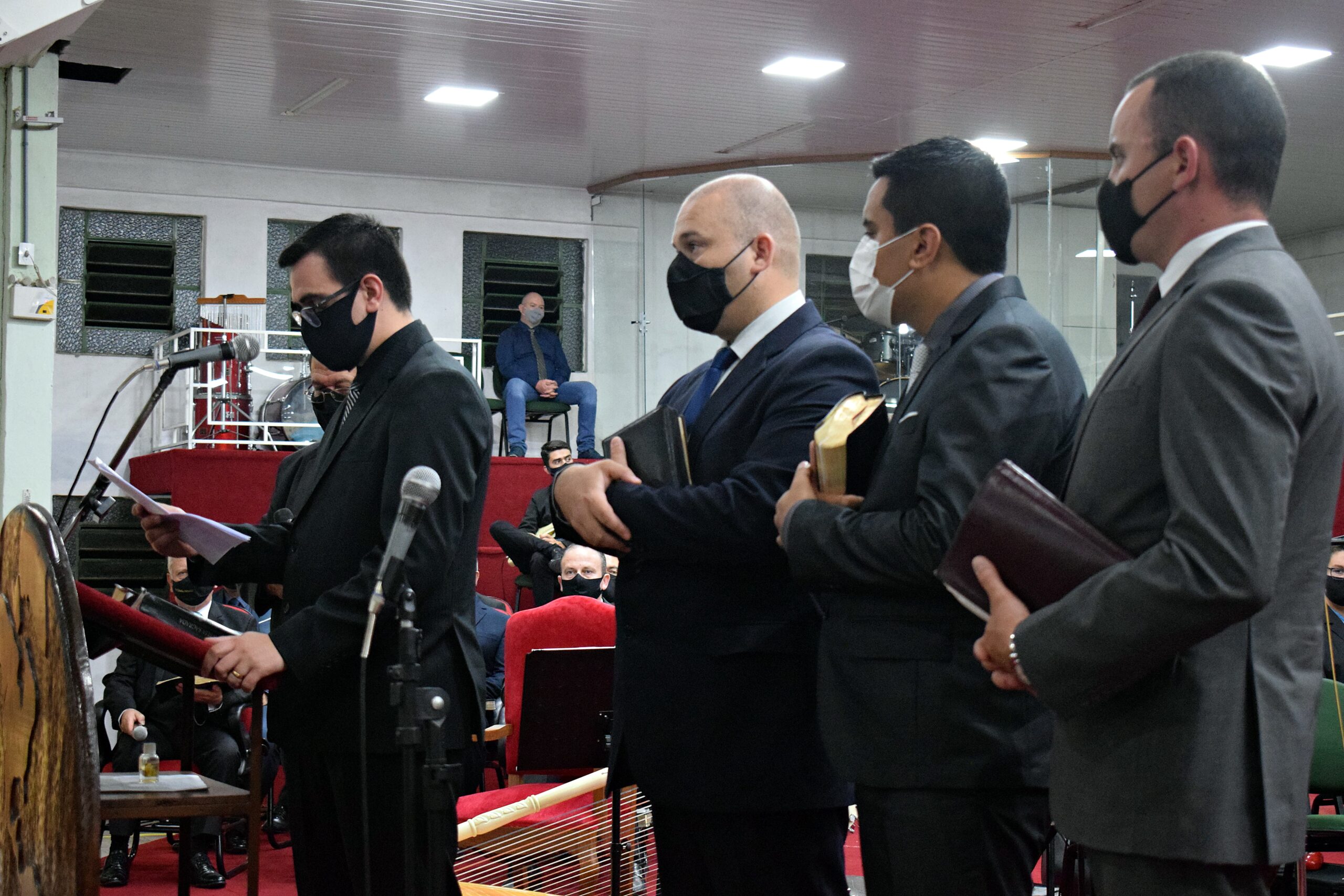 A IBC Bagé está comemorando 82 anos de fundação, neste final de semana. Durante a liturgia do primeiro culto festivo (ontem, 27 de novembro), quatro evangelistas da Igreja foram ordenados ao ministério da Palavra de Deus. São eles: Lucas Cabrera, que atende a Congregação de Aceguá, Alex Pereira, que atende a Congregação de Dom Pedrito, Deivid Machado, que atende a Congregação de Pinheiro Machado, e Pablo Redante, que é um dos obreiros responsáveis pela manutenção do Centro de Eventos Batista.